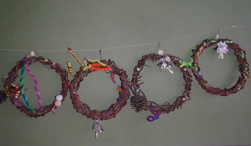 1年生でリース作りを行いました。 1年生の皆さんが育てたサツマイモとアサガオのツルを使ってリースを作りました。 一生懸命考えながら飾りを付けて完成することができました。 教室が鮮やかに彩られるリース、とてもいいですね。 …