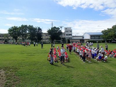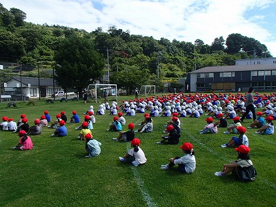 学校の様子 避難訓練 suadmin 2020年9月1日 1学期は、新型コロナウイルスの影響で避難訓練を行うことができませんでした。 避難経路のみ確認してありましたが、防災の日の今日、全校で避難訓練を行いました。 今日は、地震を想定しての訓練です。 安全のため、芝の校庭の中央に避難しました。 まとめの時間は密を避けるため、全校で広がって聞きました。