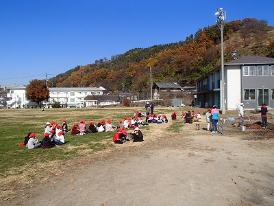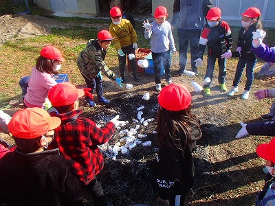 学校の様子 焼き芋会 suadmin 2020年11月12日 学級の畑で育てたサツマイモが豊作となりました。 昨日は1・2年生が、今日は3年生の焼き芋会です。 バケツの水が凍ってしまうほどの今年一番の冷え込みの朝。 早朝から燠(おき)を作り、焼き芋の準備です。 燠の中に、前日仕込みをした芋を入れ完成を待ちます。 今日は、3年生の焼き芋と2・4年生のなかよし活動が重なり、校庭が大賑わい。 1時間少々、いよいよ焼き芋とのご対面。 朝は寒かったのですが、昼間は快晴となり焼き芋のおいしさを一層引き立たせてくれました。