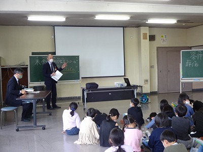 学校の様子 出前授業(3年生) suadmin 2020年11月19日 3年生の社会の授業「農業」について、市役所農林課より学校にお越しいただき授業をしていただきました。 さっそく、3年生から「長野県で一番作られているおコメの銘柄は?」といったようなクイズが出されました。 農業についての、興味が高まったようです。