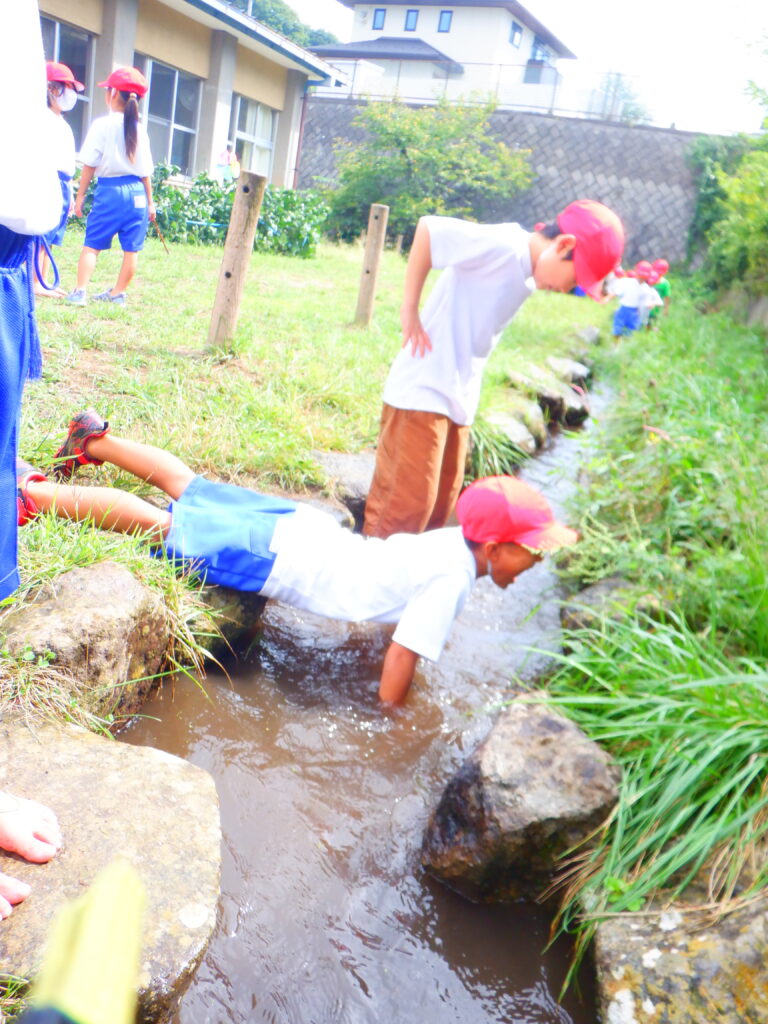 9月、1・2年生がそれぞれ川遊びをしました。