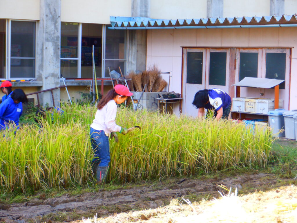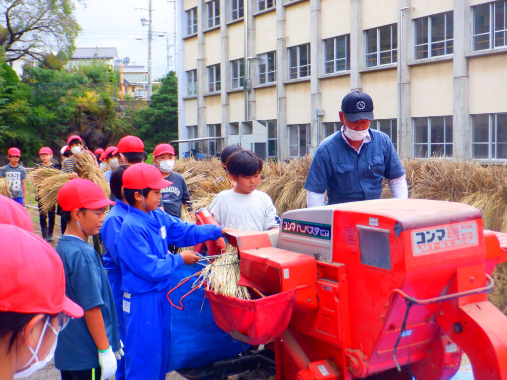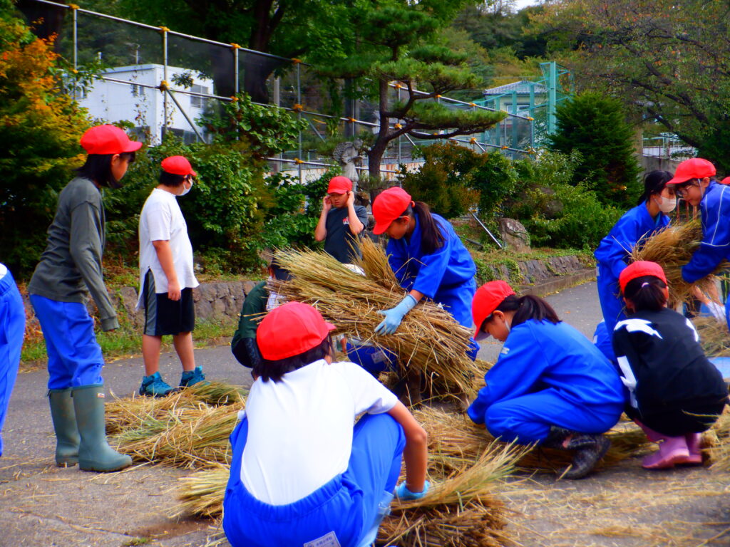 9月下旬から10月上旬にかけて5年生は稲刈りと脱穀を行いました。