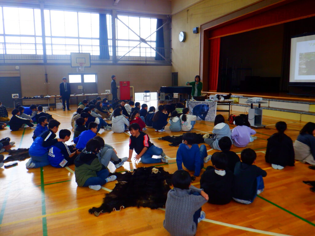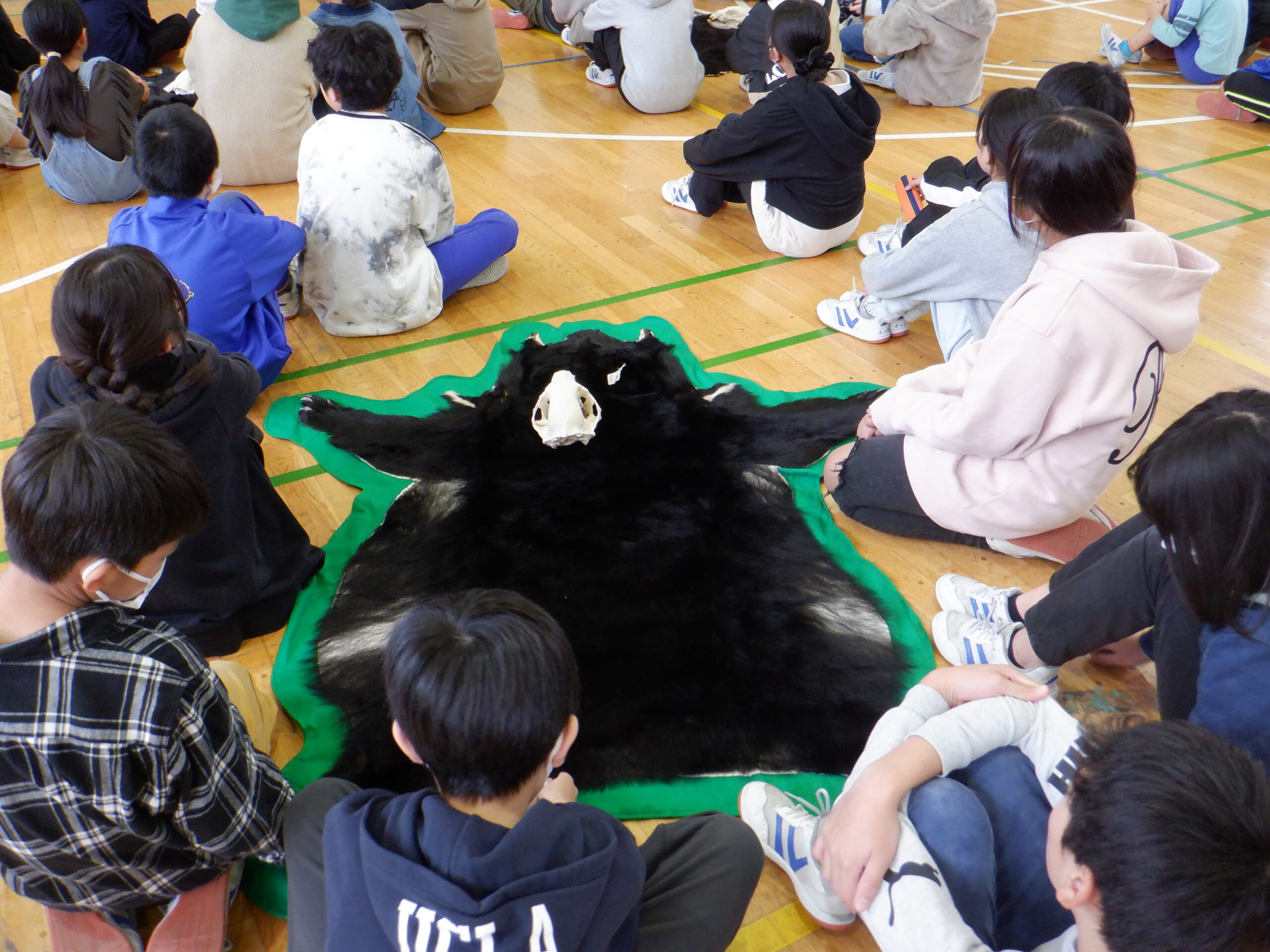 熊の生態に詳しい専門の先生と、熊の毛皮に実際に触れながら学びました。